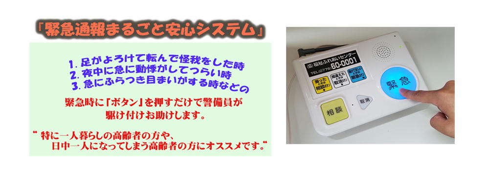 など、緊急事態が発生した時に緊急通報装置のボタンを押すだけで警備員が